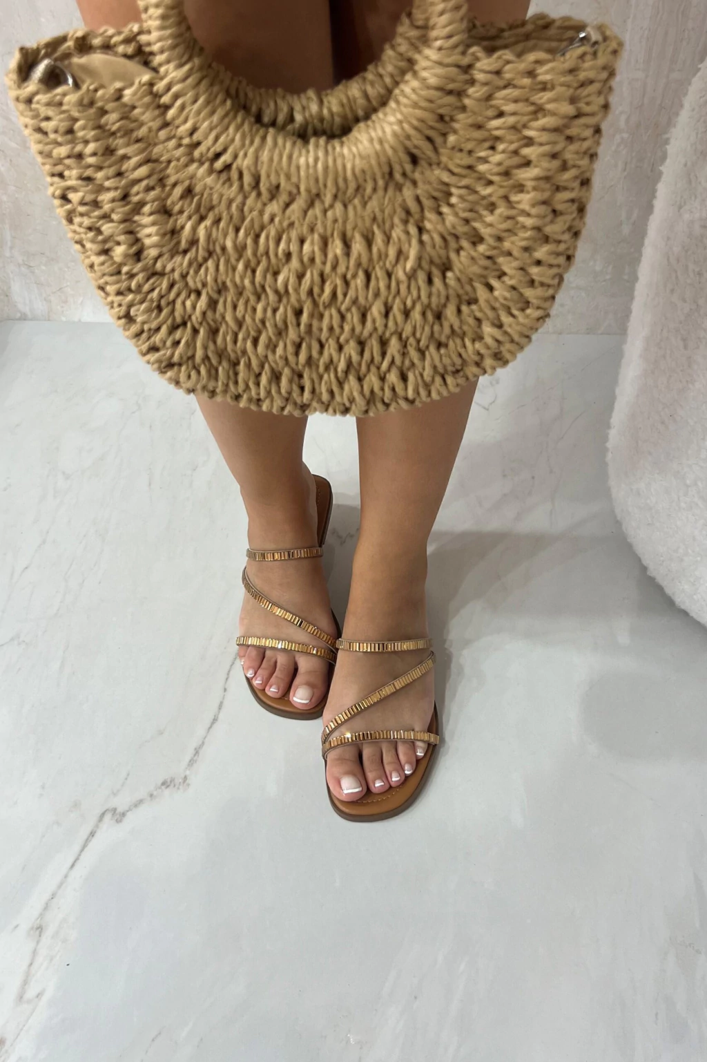 Sandalia confeccionada cuidadosamente a mano. Cada detalle es trabajado con precisión por expertos artesanos, asegurando un producto único, duradero y con un acabado impecable.